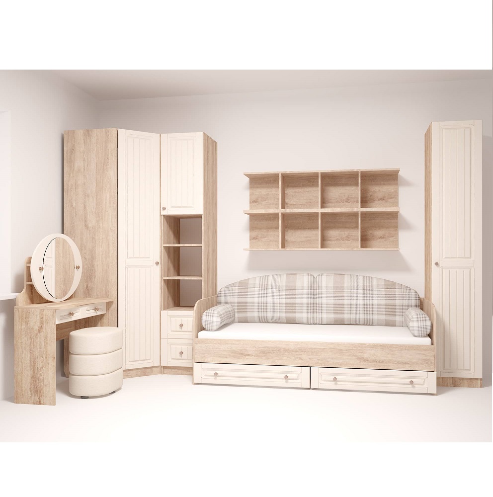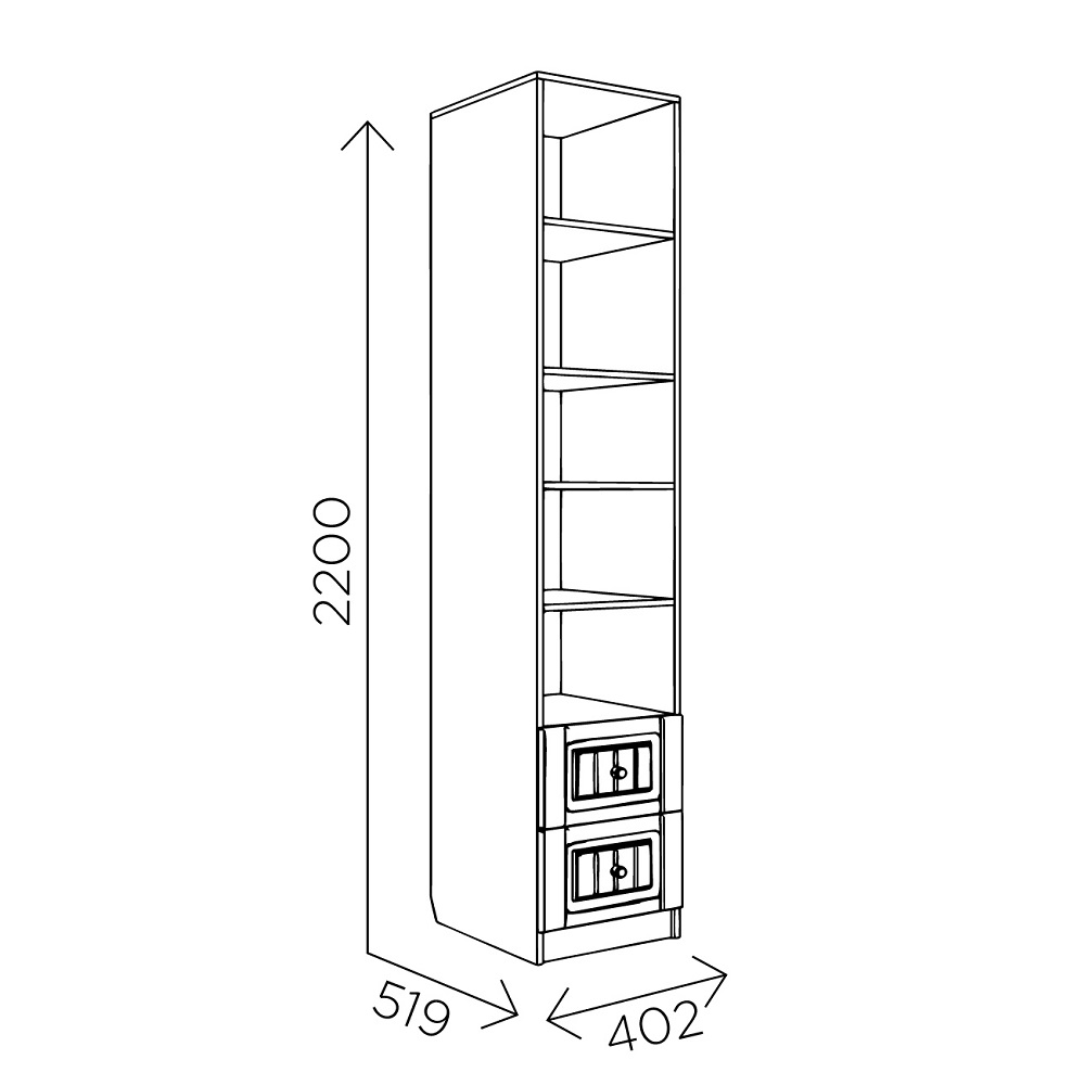 Серия мебели для спальни и подростковой Богуслава будто окутывает окружающую обстановку теплом. Кремовые фрезерованные фасады из МДФ балансируют с цветом корпуса «дуб баррик». Пенал открытый Богуслава М5 может использоваться в качестве самостоятельного модуля или в составе шкафной группы. Особенности корпус ЛДСП дуб баррик фасад МДФ, ПВХ-пленка крем-брюле с фрезеровкой ударопрочная кромка металлические ручки «античная бронза» шариковые направляющие на ящиках петли с доводчиками на фасадах